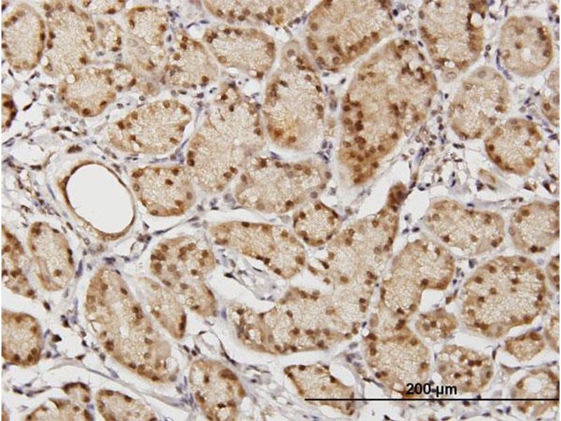 Mouse polyclonal antibody raised against a full-length human TSNAXIP1 protein.