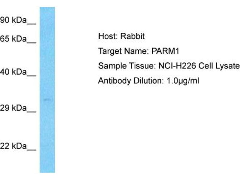 This is a rabbit polyclonal antibody against PARM1. It was validated on Western Blot.