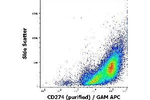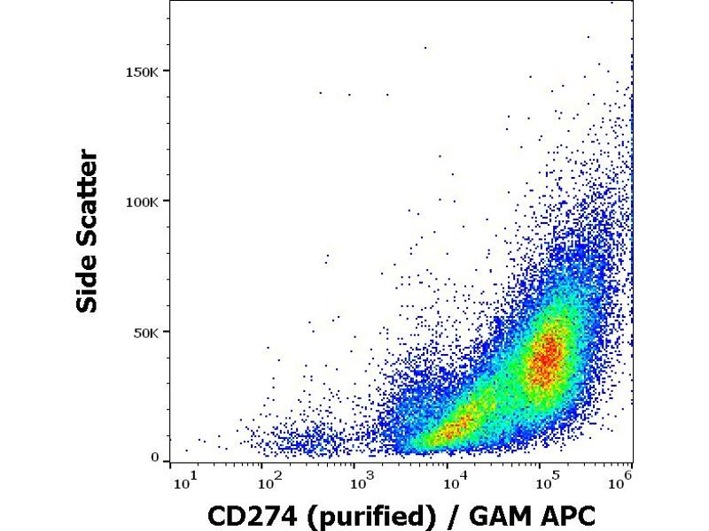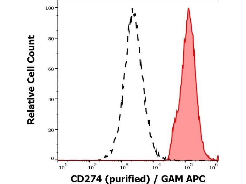 The mouse monoclonal antibody 29E.2A3 recognizes an extracellular epitope of CD274 / PD-L1 (also known as B7-H1), a 40 kDa type I transmembrane protein expressed by dendritic cells, activated T cells, activated monocytes, and in various tissues, above all in heart and skeletal muscle, placenta and lung, and in many cancer cells, including T cell lymphomas, melanomas, and glioblastomas.