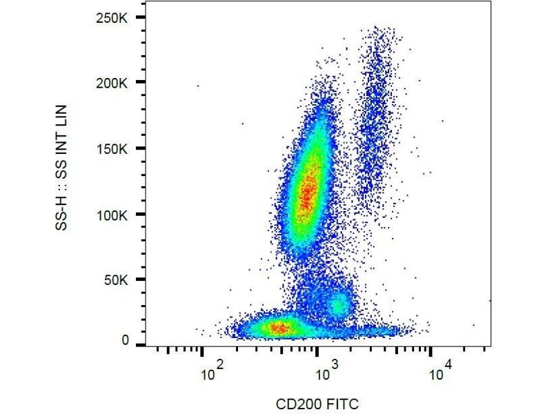 The mouse monoclonal antibody OX-104 recognizes an extracellular epitope of CD200, a type-1 glycoprotein of the immunoglobulin superfamily, which is expressed in neurons, B and T cell subsets, keratinocytes, follicular dendritic cells, and ovarian cells.