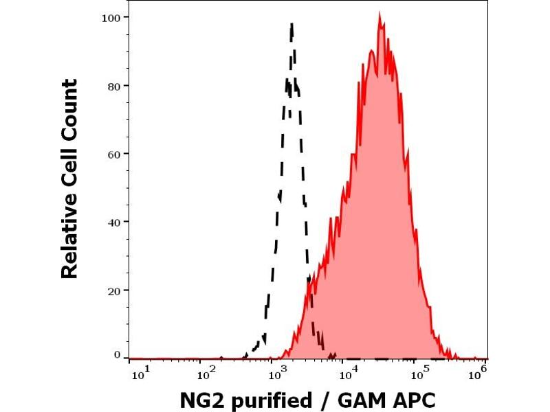 Chondroitin sulfate proteoglycan 4,NG2 / chondroitin sulfate proteoglycan 4 is expressed on glial cell populations, but not on normal hepatopoietic cells. It is an integral membrane chondroitin sulfate proteoglycan expressed by human malignant melanoma cells, where it plays role in stabilizing cell-substratum interactions during early events of melanoma cell spreading on endothelial basement membranes, and supports signaling pathways important for tumor invasion and growth. NG2 also serves as an AML blast tumor marker associated with poor prognosis.,Chondroitin sulfate proteoglycan 4, MSK16, CSPG4, MCSP