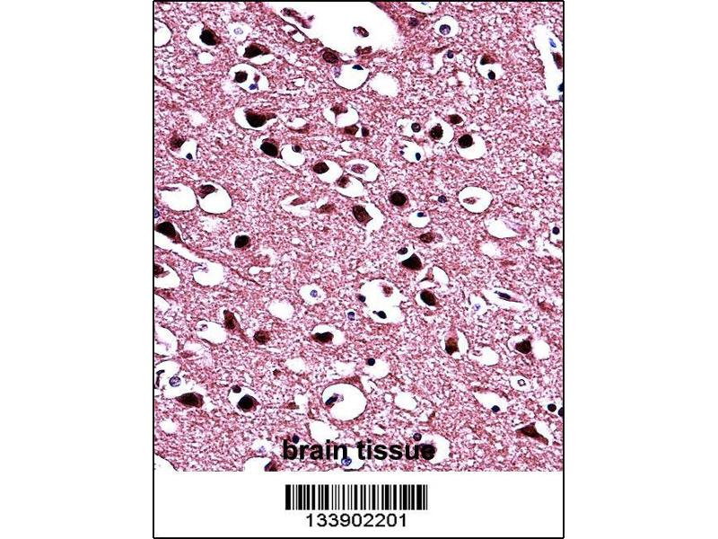 This BIN1 antibody is generated from rabbits immunized with a KLH conjugated synthetic peptide between 360-389 amino acids from the Central region of human BIN1.