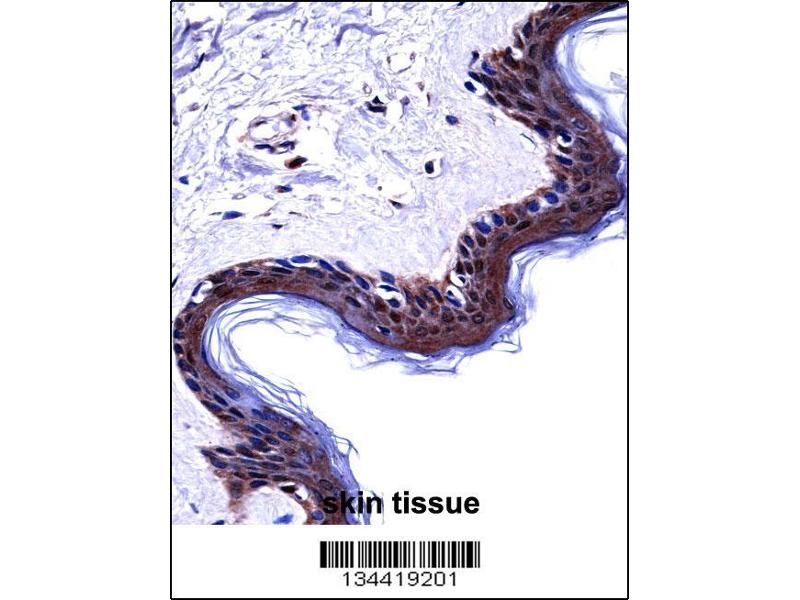 This DSG1 antibody is generated from rabbits immunized with a KLH conjugated synthetic peptide between 471-499 amino acids from the Central region of human DSG1.