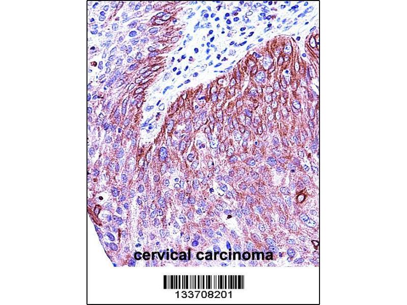 This KRT6B antibody is generated from rabbits immunized with a KLH conjugated synthetic peptide between 207-236 amino acids from the Central region of human KRT6B.
