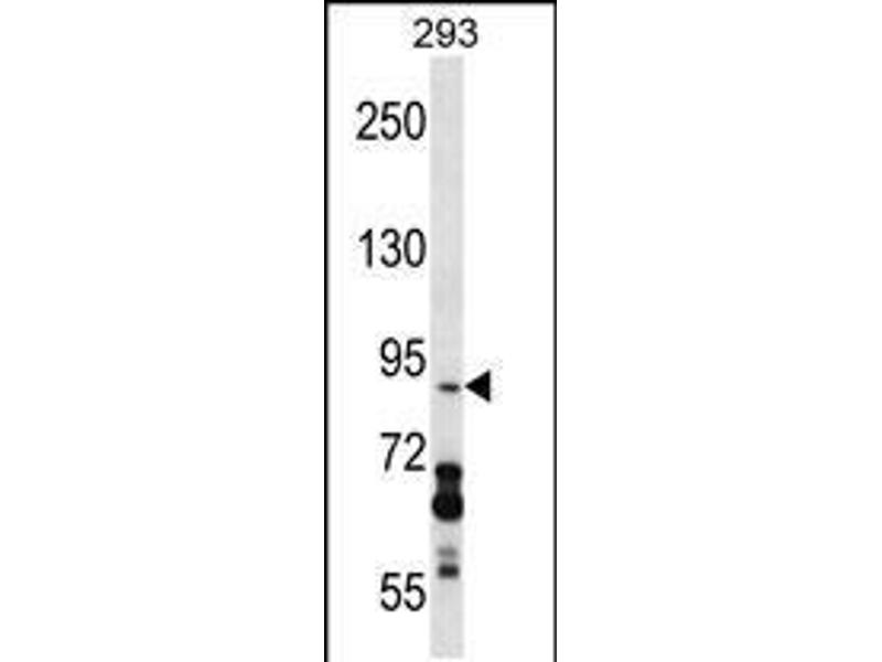 This DDX20 antibody is generated from rabbits immunized with a KLH conjugated synthetic peptide between 713-741 amino acids from the C-terminal region of human DDX20.