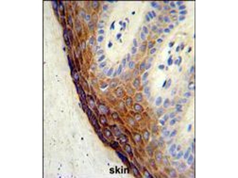 This ECE-1 antibody is generated from rabbits immunized with a KLH conjugated synthetic peptide between 528-556 amino acids from the C-terminal region of human ECE-1.