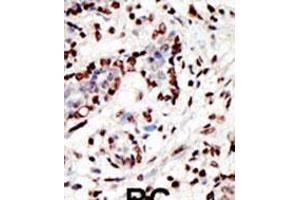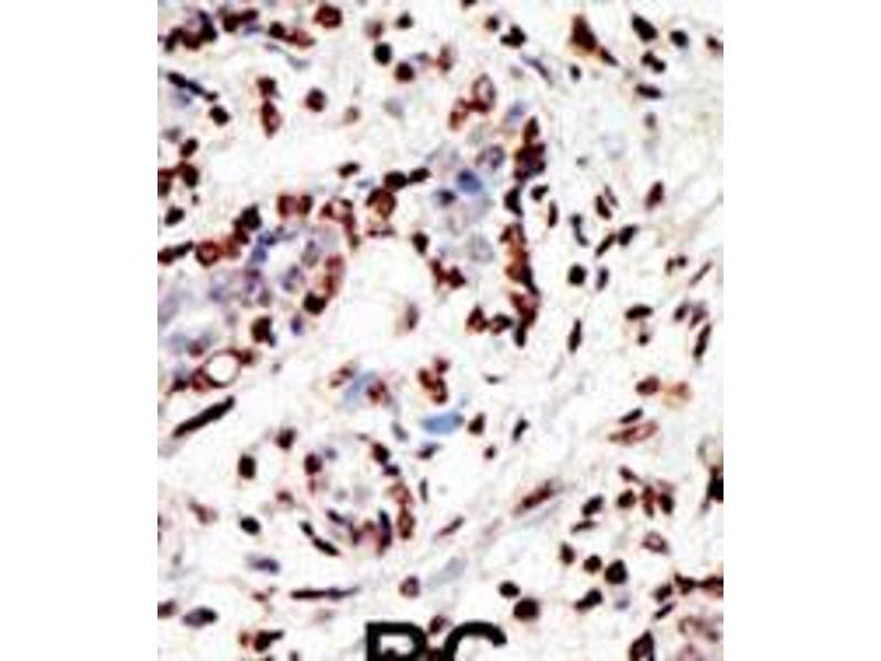 This HRX antibody is generated from rabbits immunized with a KLH conjugated synthetic peptide between 3879-3908 amino acids from the C-terminal region of human HRX.