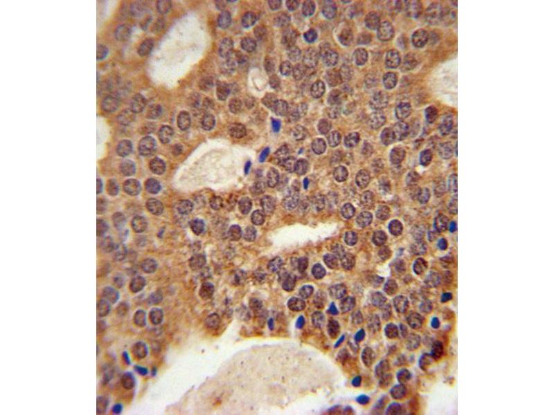 This DCLRE1B antibody is generated from rabbits immunized with a KLH conjugated synthetic peptide between 208-236 amino acids from the Central region of human DCLRE1B.