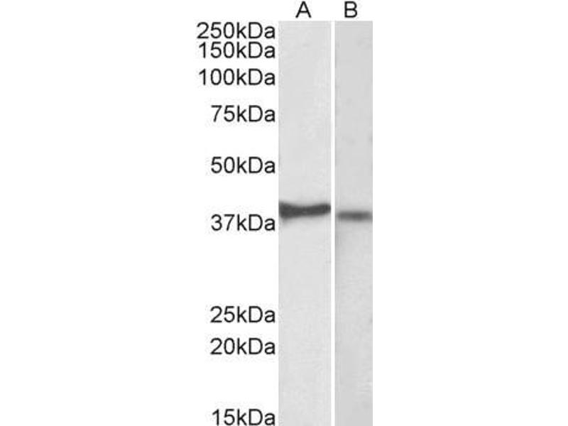 Western Blot: Approx 39 kDa band observed in lysates of cell line Kelly and 37 kDa in lysates of cell line U251-MG (calculated MW of 40.4 kDa according to NP_001328.1). Recommended concentration: 1-3 μg/mL.