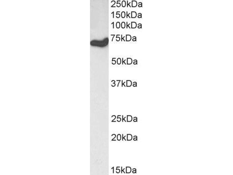 Western Blot: Appox 55 kDa band observed in Human Duodenum and Lymph Node lysates and approx 70 kDa band observed in lysates of cell lines HeLa and NIH3T3 (calculated MW of 55.1 kDa according to Human NP_004955.2 and Mouse NP_032254.1). The observed 70 kDa