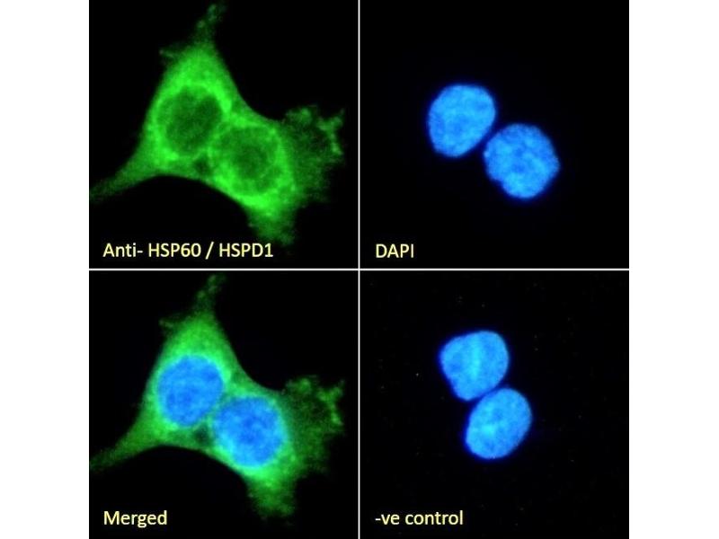Immunofluorescence: Strong expression of the protein seen in the mitochondria of HeLa cells and in the cytoplasm of A431 cells. Recommended concentration: 10μg/ml.