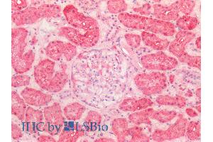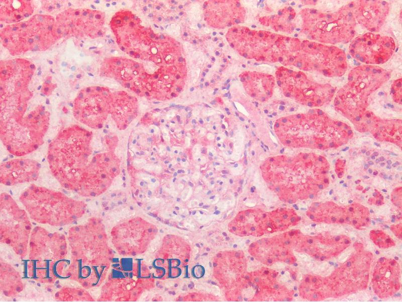 Immunohistochemistry: Paraffin embedded Human Kidney. Recommended concentration: 5 μg/mL.