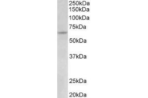 Western Blot: Approx 65 kDa band observed in lysates of cell line HeLa (calculated MW of 69.8 kDa according to NP_003352.2). Recommended concentration: 0.03-0.1 μg/mL.