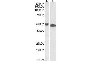 Western Blot: Approx 50 kDa and 48 kDa bands observed in lysates of cell lines Jurkat and K562 respectively (calculated MW of 44.2 kDa according to NP_006259.1). This molecular weight is routinely observed by other sources. Recommended concentration: 1-3 μg