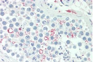 Immunohistochemistry: Paraffin embedded Human Testis. Recommended concentration: 5 μg/mL.