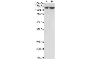 Western Blot: Approx 140 kDa band observed in nuclear lysates of cell lines HEK293 and HeLa (calculated MW of 122 kDa according to NP_005603.3). This molecular weight is routinely observed by other sources. Recommended concentration: 0.3-1 μg/mL.