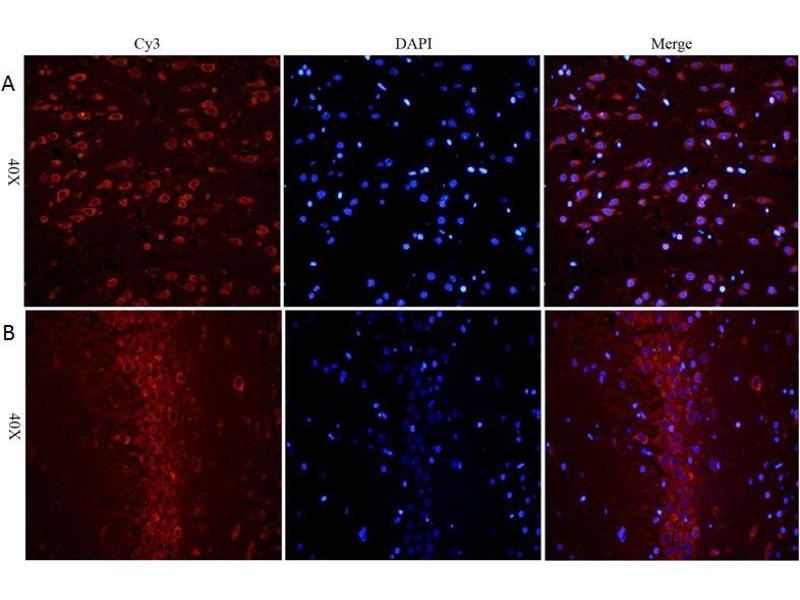 Immunofluorescence: Expression of the protein seen in the nucleus and cytoplasm of Glioblastoma U251 cells. Recommended concentration: 10μg/ml.