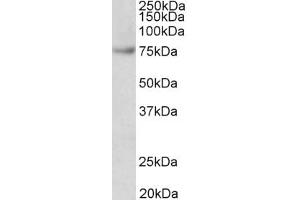 Western Blot: Approx 75 kDa band observed in lysates of cell line Jurkat (calculated MW of 67.4 kDa according to NP_476513.2). Recommended concentration: 0.03-0.1 μg/mL.