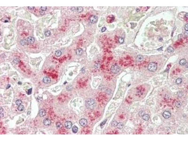 Immunohistochemistry: Paraffin embedded Human Liver. Recommended concentration: 5 μg/mL.