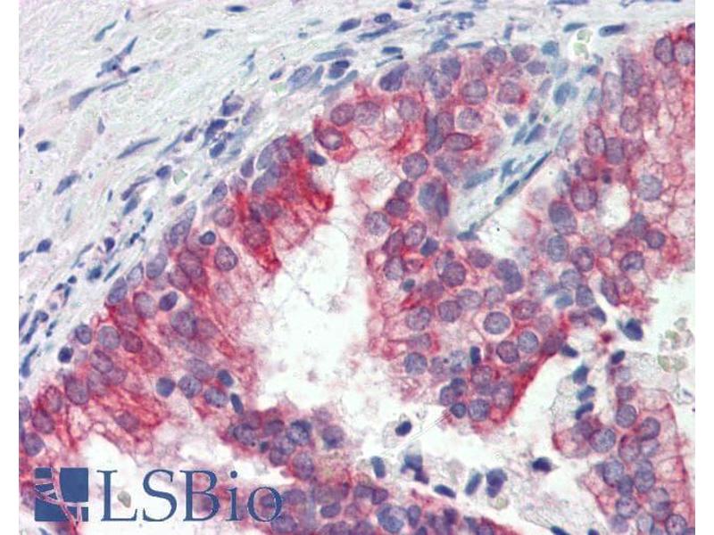 Immunohistochemistry: Paraffin embedded Human Prostate. Recommended concentration: 4-6 μg/mL.