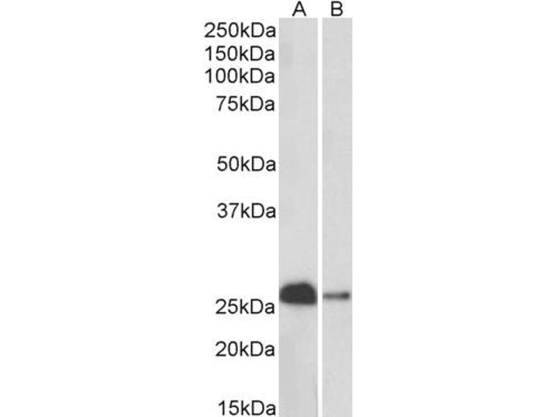 Western Blot: Approx. 26 kDa band observed in Human and Rat Kidney lysates and in Rat Brain lysates (calculated MW of 30.0 kDa according to Human NP_004920.1and Rat NP_114190.1). The observed molecular weight is routinely observed by other sources. Recomme