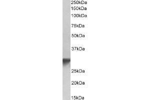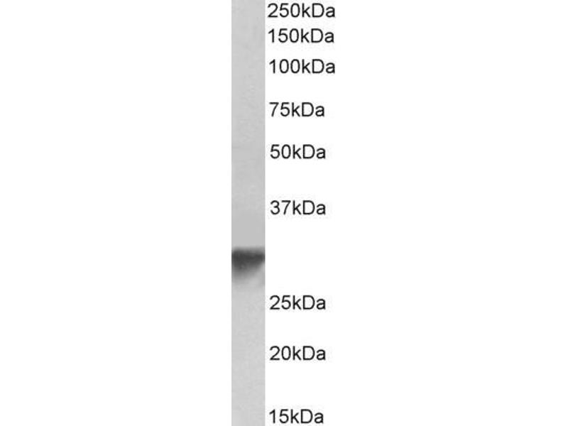 Western Blot: Approx 33 kDa band observed in lysates of Human Platelets and Mouse Brain (calculated MW of 33.8 kDa according to NP_071413.1). Recommended concentration: 0.1-0.3 μg/mL.