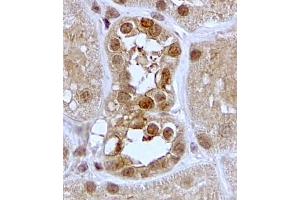 Immunohistochemistry: In paraffin embedded Human Kidney shows membrane and nuclear stains in epithelial cells of DCT. Recommended concentration, 2-4 μg/mL.