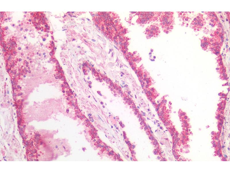 Immunohistochemistry: Paraffin embedded Human Prostate. Recommended concentration: 5 μg/mL.