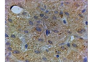 Immunohistochemistry: In paraffin embedded Human Liver shows vesicular staining in the cytoplasm of the hepatocytes. Recommended concentration, 2-4 μg/mL.