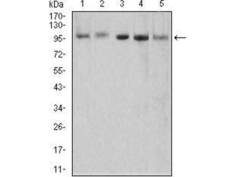 The Mouse Monoclonal anti-XRN2 antibody (Clone 9F7G11) (ABIN5542261) specifically detects XRN2 in WB, ELISA and IHC.