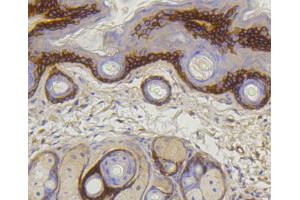 Background: May play a role in the integrity of hemidesmosome and the attachment of basal keratinocytes to the underlying basement membrane. The 120 kDa linear IgA disease antigen is an anchoring filament component involved in dermal-epidermal cohesion. Is the target of linear IgA bullous dermatosis autoantibodies.