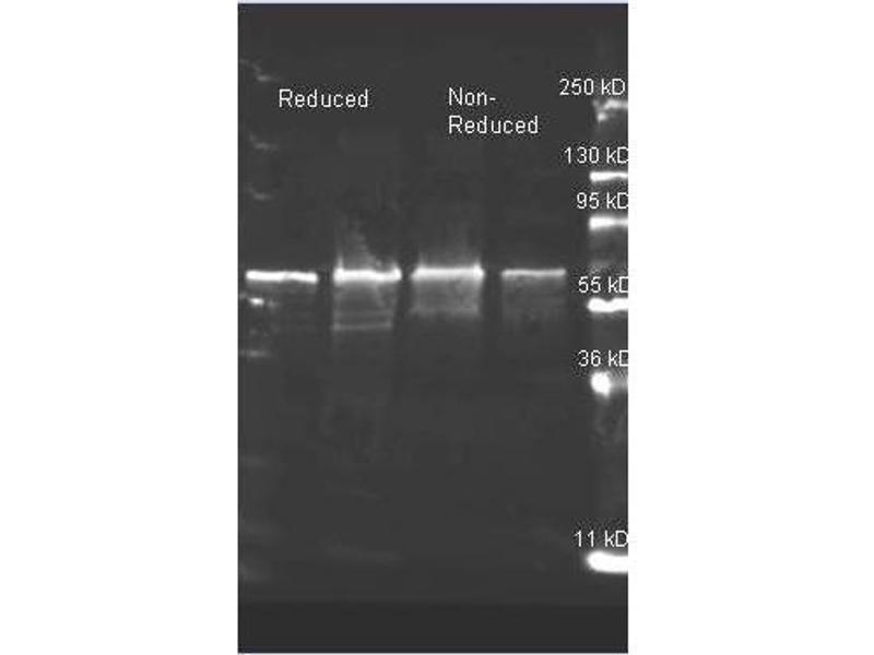 Application Note: Anti-Choline oxidase has been tested by ELISA and western blot and is assayed against 1.0 μg of Choline Oxidase [Alcaligenes species] in a standard capture ELISA using ABTS (2,2'-azino-bis-[3-ethylbenthiazoline-6-sulfonic acid]) code # ABTS-100 as a substrate for 30 minutes at room temperature. A working dilution of 1:1,000 to 1:5,000 of the reconstitution concentration is suggested for this product.