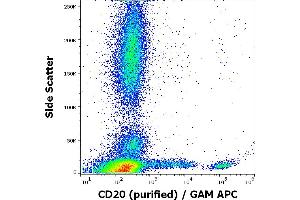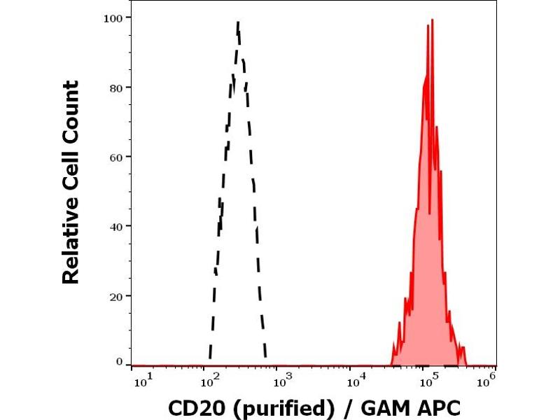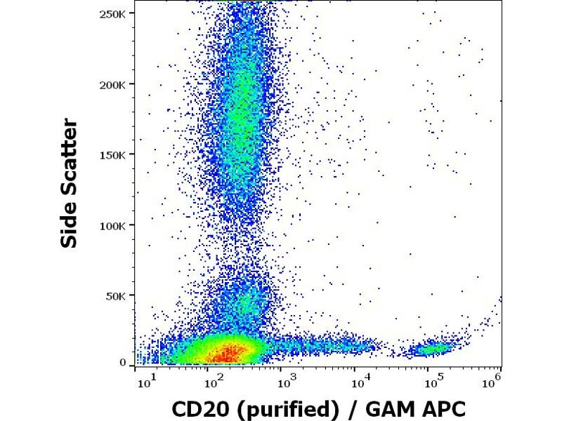 MS4A1,CD20 is a cell surface 33-37 (depending on the degree of phosphorylation) kDa non-glycosylated surface phosphoprotein expressed on mature and most malignant B cells, but not stem cells or plasma cells (low number of the CD20 has been also detected on a subpopulation of T lymphocytes and it can be expressed on follicular dendritic cells). Its expression on B cells is synchronous with the expression of surface IgM. CD20 regulates transmembrane calcium conductance (probably functioning as a component of store-operated calcium channel), cell cycle progression and B-cell proliferation. It is associated with lipid rafts, but the intensity of this association depends on extracellular triggering, employing CD20 conformational change and/or BCR (B cell antigen receptor) aggregation. After the receptor ligation, BCR and CD20 colocalize and then rapidly dissociate before BCR endocytosis, whereas CD20 remains at the cell surface. CD20 serves as a useful target for antibody-mediated therapeutic depletion of B cells, as it is expressed at high levels on most B-cell malignancies, but does not become internalized or shed from the plasma membrane following mAb treatment.,B1, S7, MS4A, Bp35, CVID5, LEU-16