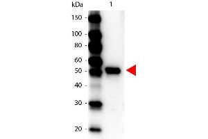 Application Note: Anti-Carboxypeptidase Y Peroxidase antibody has been tested by ELISA and western blot and is assayed against 1.0 μg of Carboxypeptidase Y [Baker's Yeast] in a standard capture ELISA using ABTS (2,2'-azino-bis-[3-ethylbenthiazoline-6-sulfonic acid]) code # ABTS-100 as a substrate for 30 minutes at room temperature. A working dilution of 1:20,000 to 1:100,000 of the reconstitution concentration is suggested for this product.