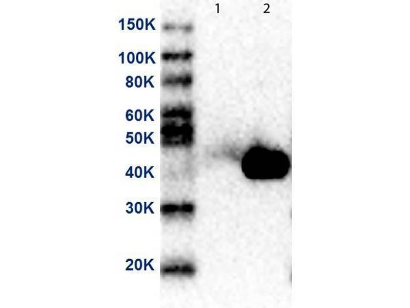 Immunogen: Anti-MEK2 Monoclonal Antibody was produced in mice by repeated immunizations with synthetic peptide corresponding to amino acid residues near the N-terminus conjugated to KLH.