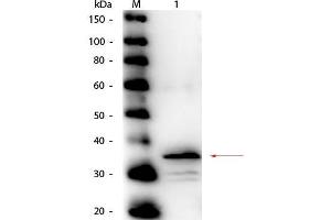 Application Note: Anti-Carboxypeptidase B peroxidase Antibody has been tested in western blot and suitable to be assayed against 1.0 μg of Carboxypeptidase B [Porcine Pancreas] in a standard capture ELISA using ABTS (2,2'-azino-bis-[3-ethylbenthiazoline-6-sulfonic acid]) code # ABTS-100 as a substrate for 30 minutes at room temperature. A working dilution of 1:1,000 to 1:3,000 of the reconstitution concentration is suggested for Anti-Carboxypeptidase B Antibody.