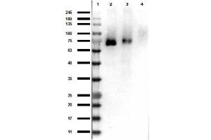Immunogen: Anti-RON pY1353 Antibody was produced in rabbits by repeated immunizations with a synthetic peptide corresponding to residues surrounding Y1353 of human RON protein.