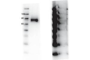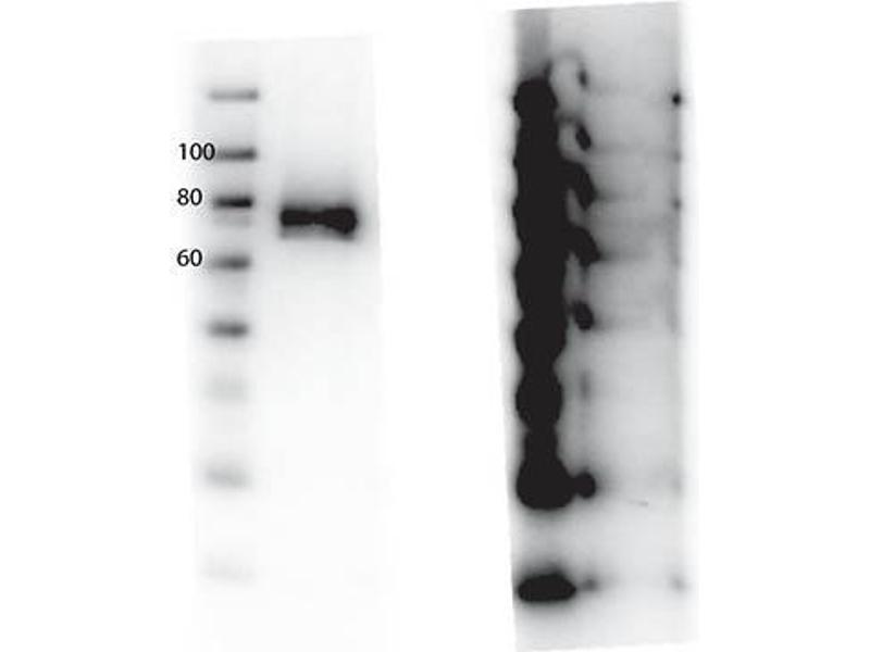 Immunogen: Anti-RON pY1360 Antibody was produced in rabbits by repeated immunizations with a synthetic peptide corresponding to residues surrounding Y1360 of human RON protein.