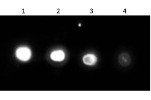 Application Note: Anti-Urease peroxidase conjugated antibody has been tested by dot blot and is suitable to be assayed against 1.0 μg of Urease [Jack Bean] in a standard capture ELISA using ABTS (2,2'-azino-bis-[3-ethylbenthiazoline-6-sulfonic acid]) code # ABTS-100 as a substrate for 30 minutes at room temperature. A working dilution of 1:500 to 1:2,000 of the reconstitution concentration is suggested for this product.