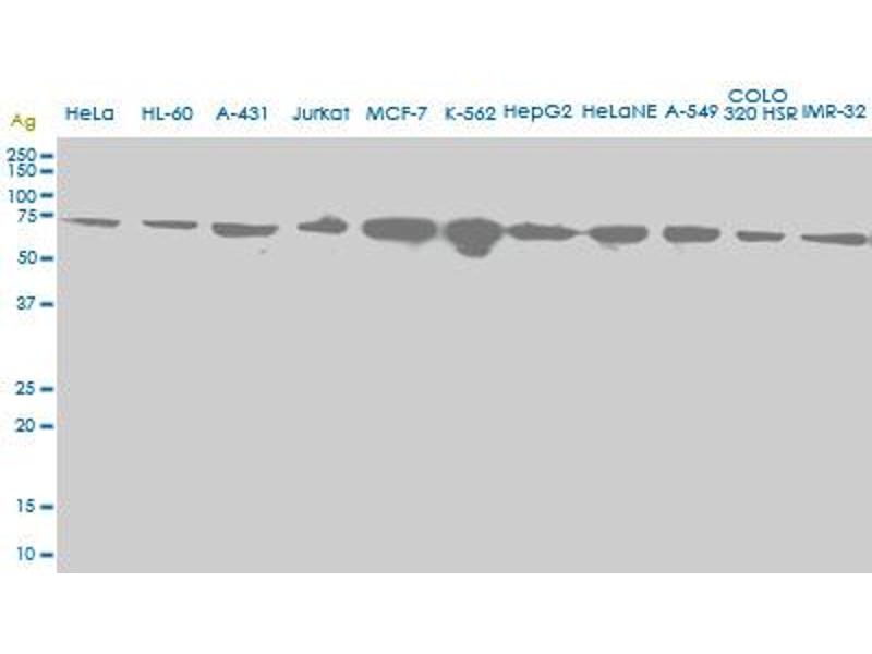 This Mouse Monoclonal antibody specifically detects HSPA2 in WB, IP, ELISA and IHC (p). It exhibits reactivity toward Humanand has been mentioned in 1 publication.