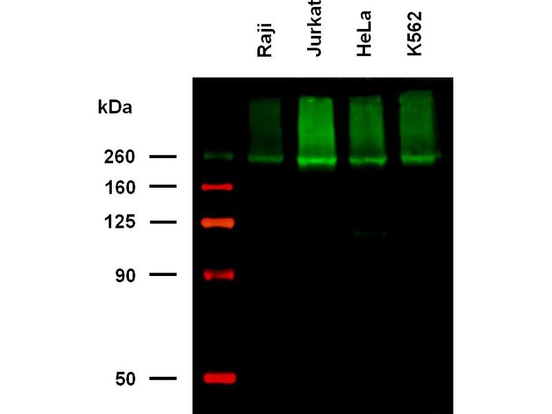 The antibody MEM-238 recognizes an extracellular epitope between amino acids 192-697 of CD222 (IGF2 receptor), a ubiquitously expressed 250 kDa multifunctional type I transmembrane protein. The majority of CD222 is found in the late endosomal/prelysosomal compartment, 5-10 % in the plasma membrane and the truncated (220 kDa) form of CD222 is present in human and bovine serum.