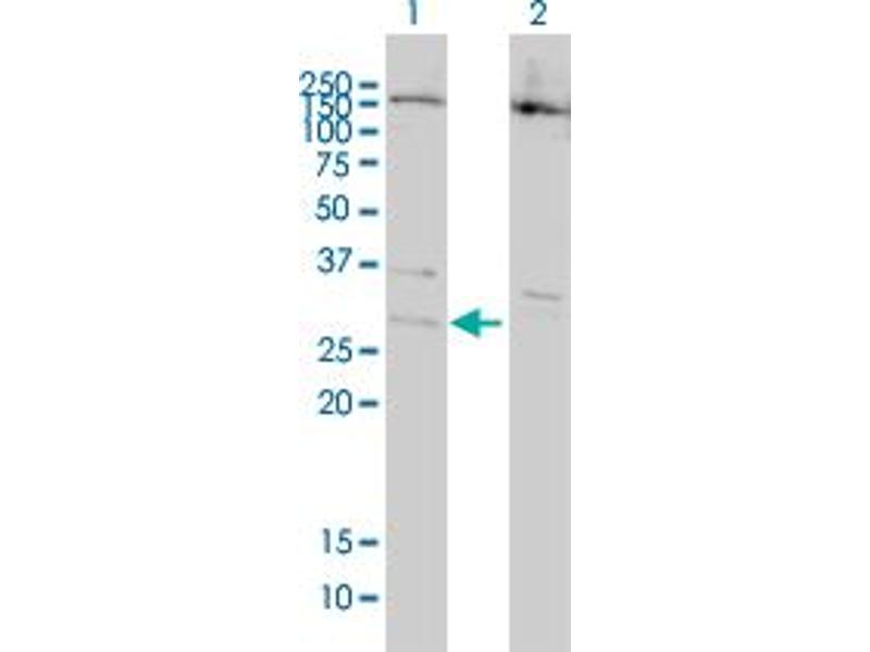 BCL7B (NP_001698, 124 a.a. ~ 202 a.a) partial recombinant protein with GST tag. MW of the GST tag alone is 26 KDa.