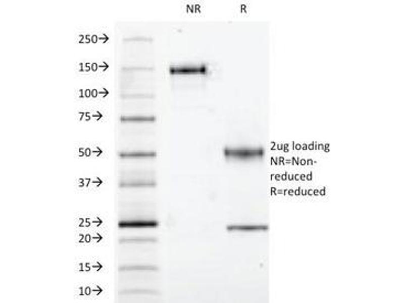1. The prediluted format is supplied in a dropper bottle and is optimized for use in IHC. After epitope retrieval step (if required), drip mAb solution onto the tissue section and incubate at RT for 30 min.\. Flow Cytometry: 0.5-1 μg/million cells in 0.1ml,Immunofluorescence: 1-2 μg/mL,Western blot: 0.5-1 μg/mL,Immunohistochemistry (FFPE): 0.25-0.5 μg/mL for 30 min at RT,Prediluted IHC only format: incubate for 30 min at RT (1)