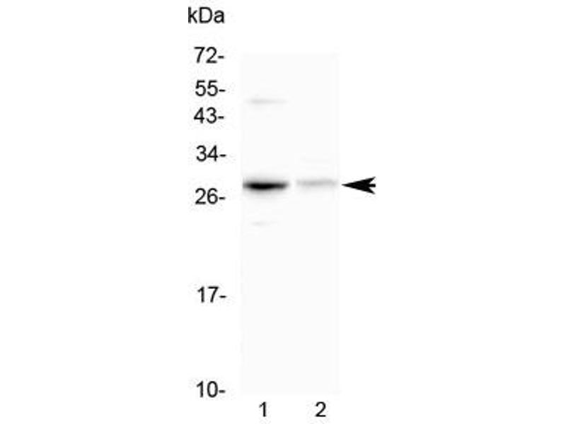 Optimal dilution of the Oncostatin M antibody should be determined by the researcher.\. Western Blot: 0.5-1 μg/mL,ELISA (capture): 0.1-0.5 μg/mL