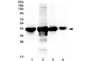 Optimal dilution of the PON1 antibody should be determined by the researcher.\. Western Blot: 0.5-1 μg/mL,IHC (FFPE): 1-2 μg/mL,ELISA (Capture, mouse recombinant protein): 0.1-0.5 μg/mL (BSA-free format available)