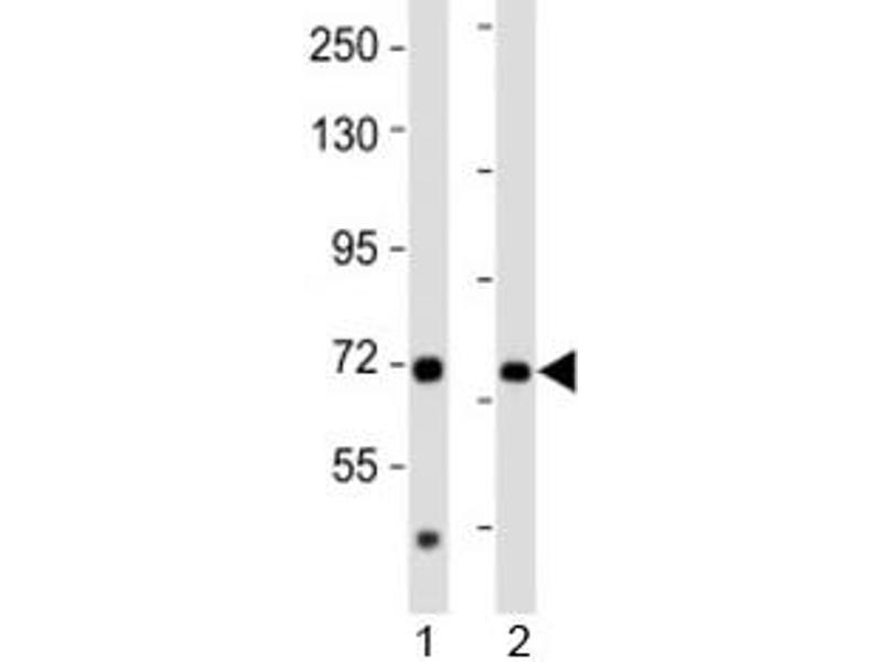 This AACS antibody was produced from a rabbit immunized with a KLH conjugated synthetic peptide between 539-573 amino acids from the C-terminal region of human AACS.