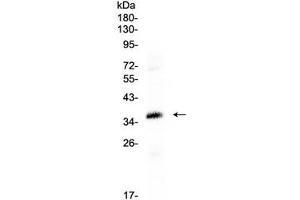 Optimal dilution of the CRX antibody should be determined by the researcher.\. WB: 0.5-1 μg/mL