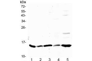 Optimal dilution of the Galectin 1 antibody should be determined by the researcher.\. Western Blot: 0.5-1 μg/mL,IHC (FFPE): 1-2 μg/mL,ELISA (Capture, rat recombinant protein): 0.1-0.5 μg/mL (BSA-free format available)