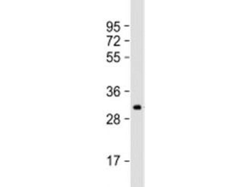 Aliquot the IGFBP5 antibody and store frozen at -20°C or colder. Avoid repeated freeze-thaw cycles.
