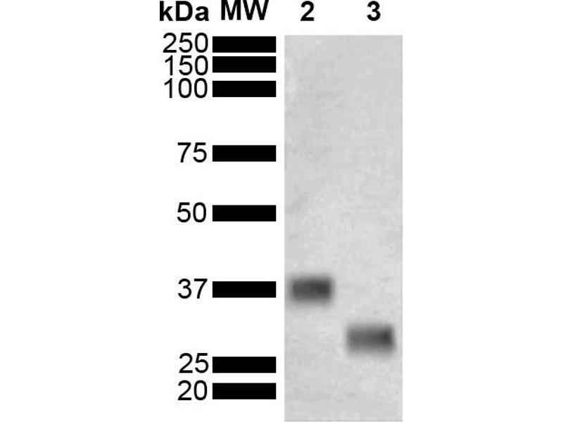 A 1:1000 dilution of ABIN5650741 was sufficient for detection of GST in 1 μg of Purified GST tagged PmtA by ECL immunoblot analysis using goat anti-mouse IgG:HRP as the secondary antibody.